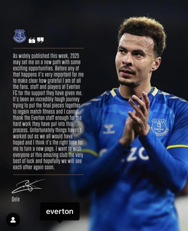 阿里寫道:“正如本周大家廣泛談論的那樣,2025年我可能會走上一條新的道路,因為有一些令人感到興奮的的機會。在這一切發生之前,我必須要先明確的表達一下我對于所有球迷的感激之情,以及埃弗頓所有工作人員以及球員對我的支持。